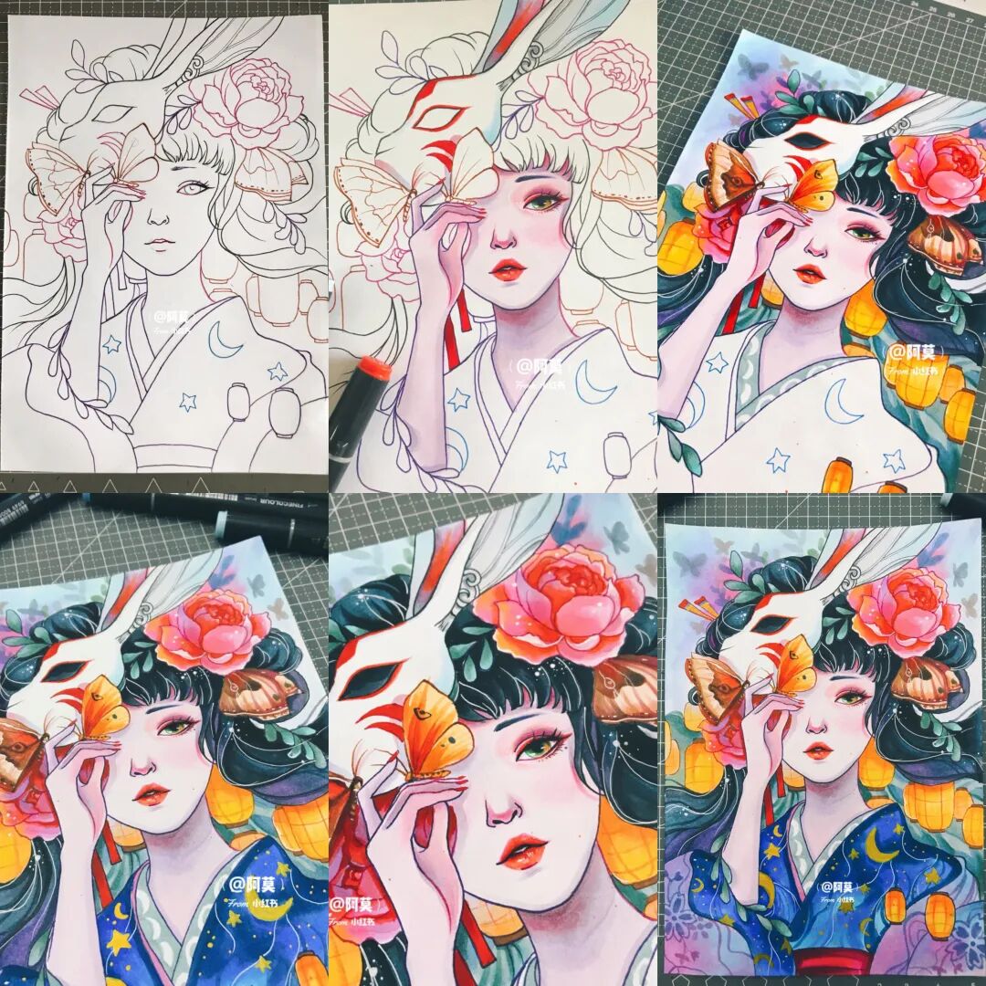 層層疊色,生動絢麗,這些都是馬克筆創造出來的。簡單的塗鴉到逐漸創造出色彩和細節更豐富!
