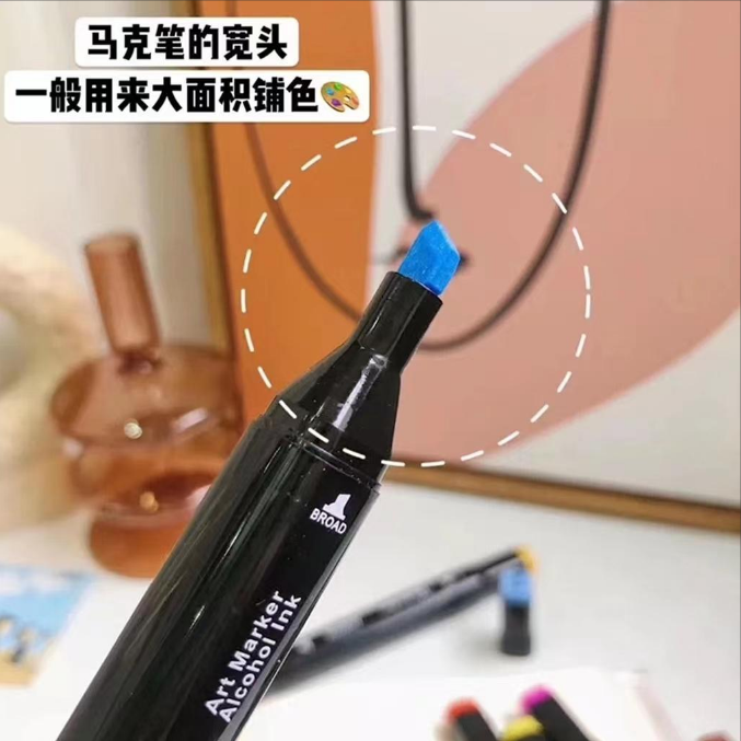 寬頭用來大面積鋪色,側峰可以畫出纖細線條,力度大線條粗圓頭用來細節描繪
