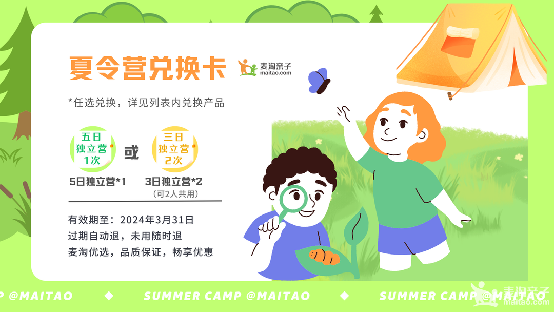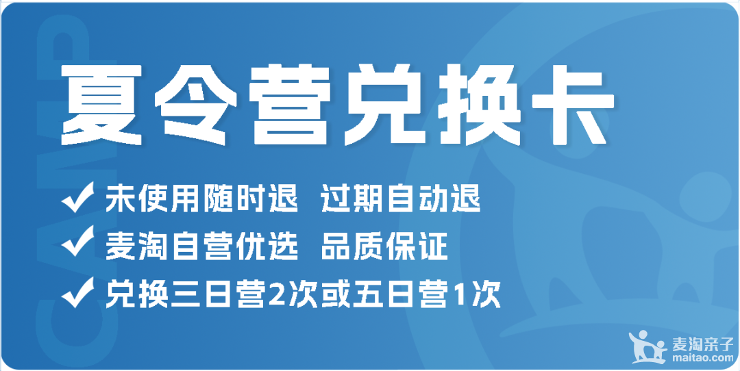 為此,麥淘今年誠意推出「夏令營兌換卡」,卡內可兌換的產品均為麥淘自營夏令營或是甄選過品質的產品,並且通過平臺資源整合能力,做到極高性價比,真正的品質和性價比我都要!