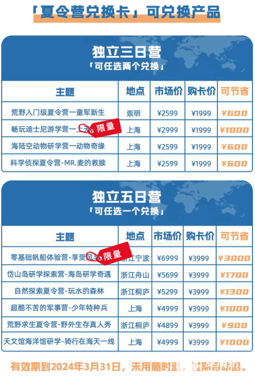 使用夏令營兌換卡,享受超級性價比,直降3000!