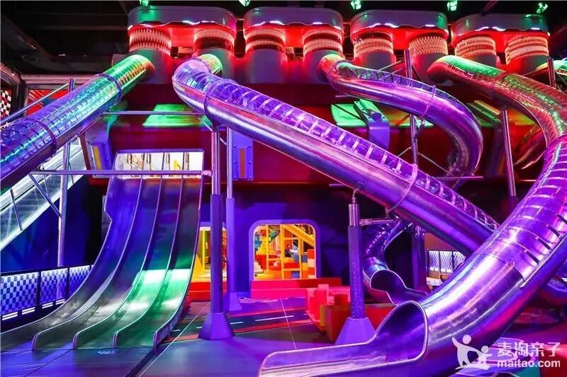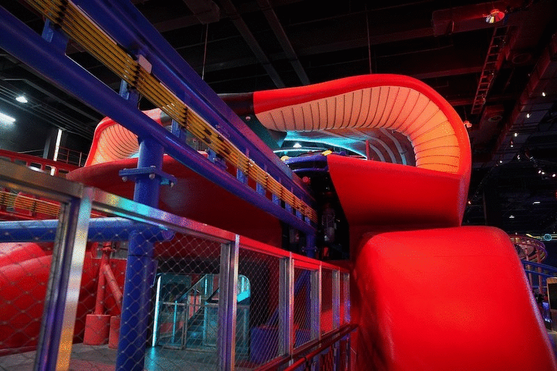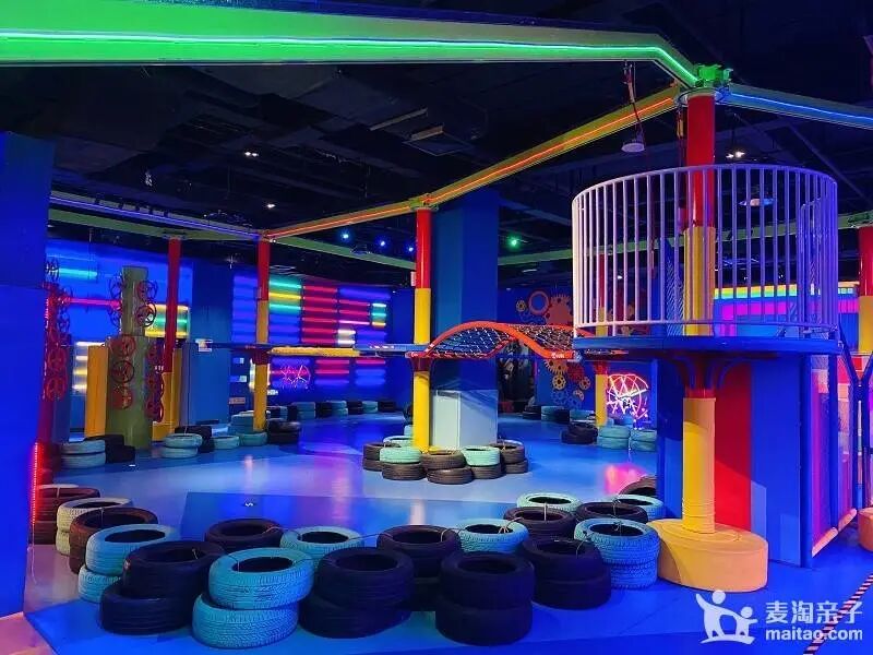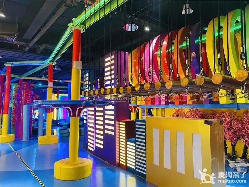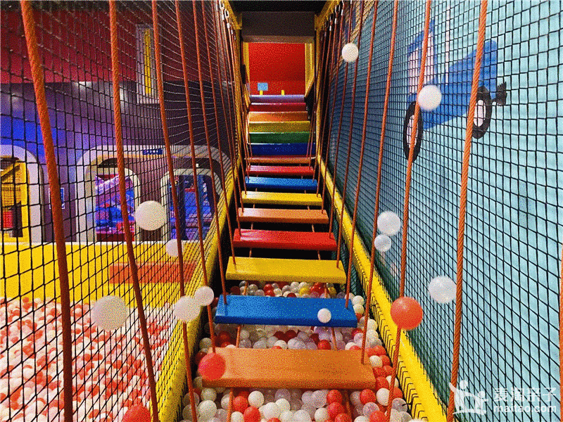 一旁的繽紛海洋球池、彩虹爬網、趣味攀巖…