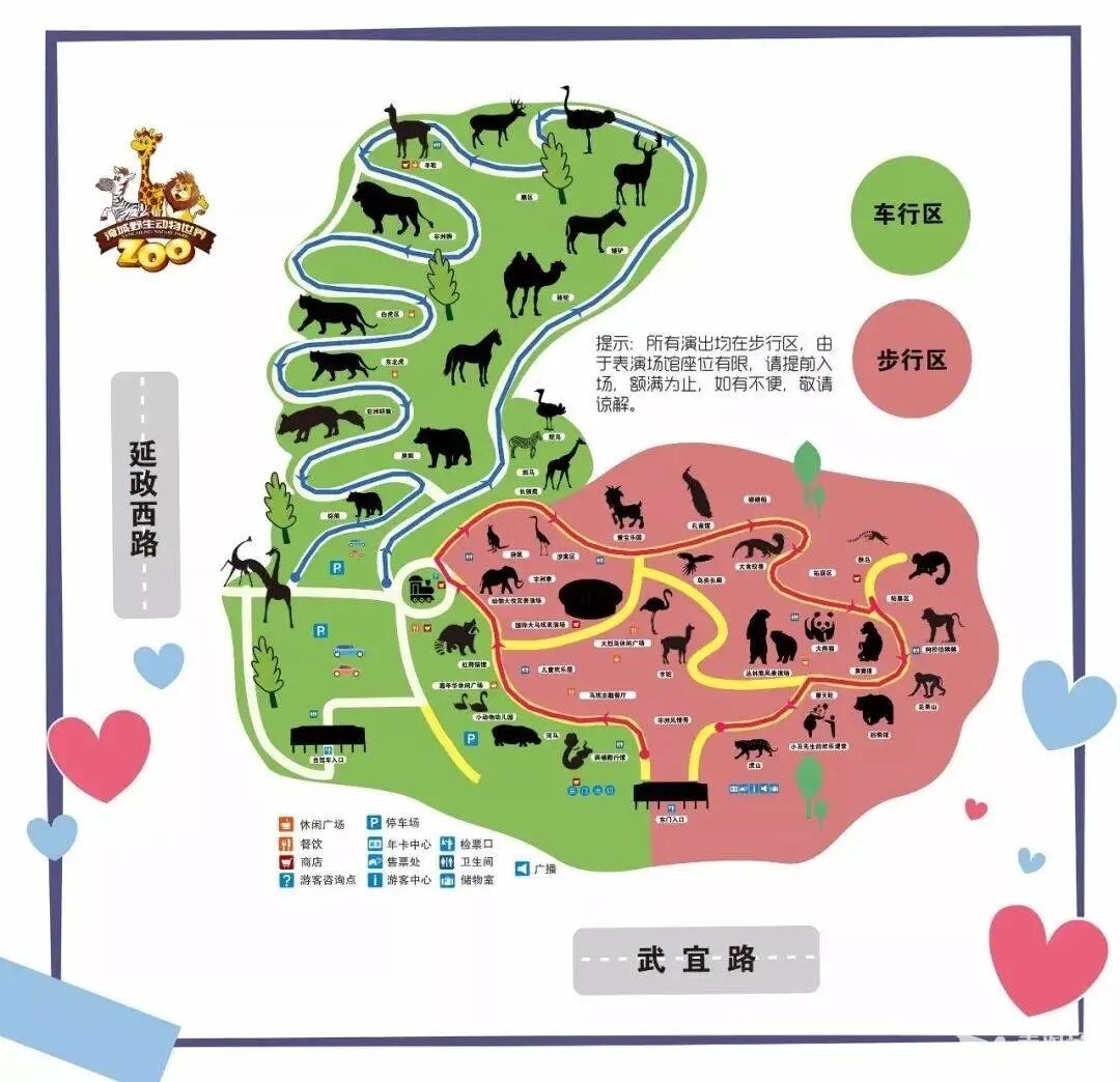 園區佈局清晰明瞭,分為綜合步行區(集主題遊樂設施、馬戲表演為一體、動物主題生態場館與一體)和自駕區兩大區域(集仿生態散養,非洲原野、歐亞大陸、鹿苑風情、神獸樂園、猛獸區等鮮明的主題性區域與一體)。