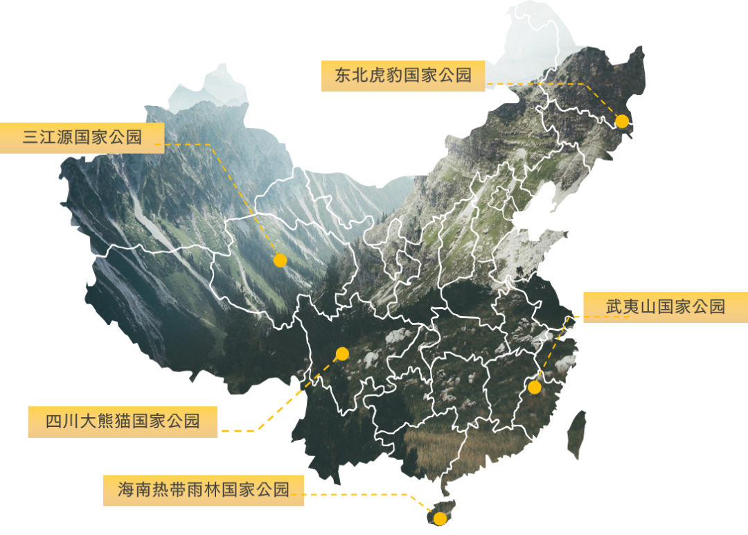 2021年10月12日,中國在《生物多樣性公約》第十五次締約方大會(COP15)領導人峰會上宣佈:我國正式設立三江源國家公園、大熊貓國家公園、東北虎豹國家公園、海南熱帶雨林國家公園、武夷山國家公園五家作為第一批國家公園。