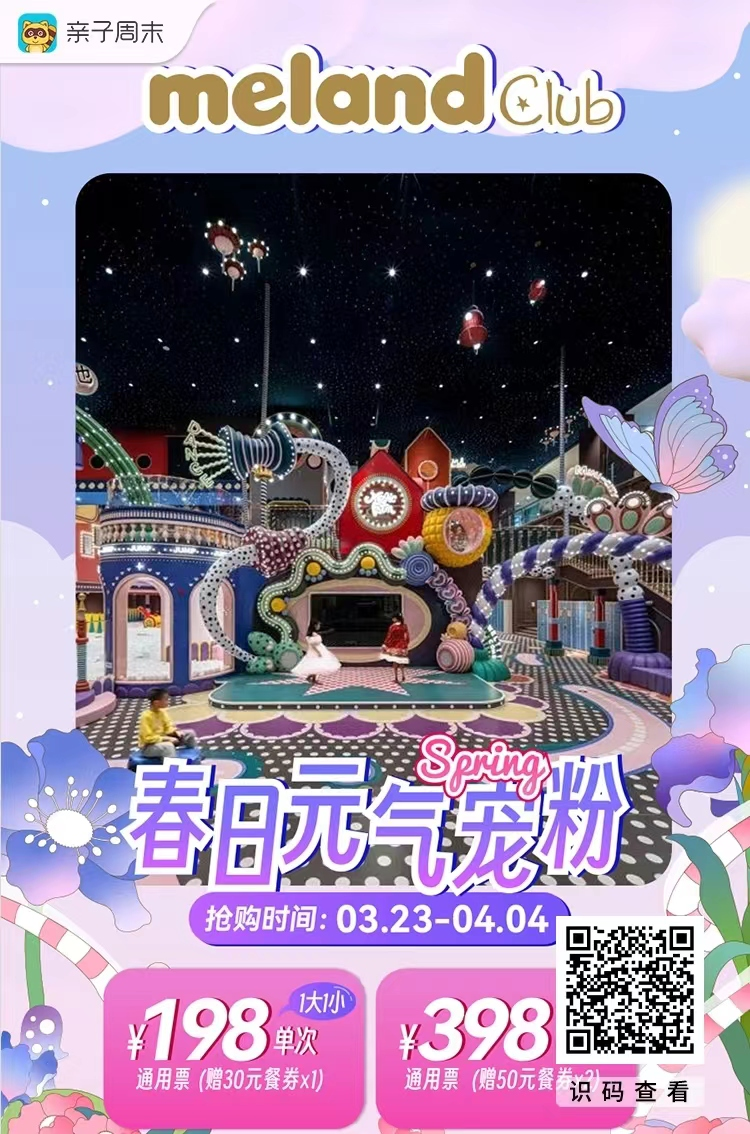 【春日大促】¥198搶meland club(樂峰廣場)1大1小1次通用票+餐券,週末節假日通用!至少提前1天預約