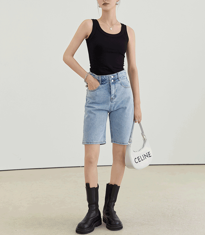 像下圖中這樣單穿下身再搭條老爹牛仔褲,將下襬塞進褲腰中,同樣可以輕鬆遮掉小贅肉~