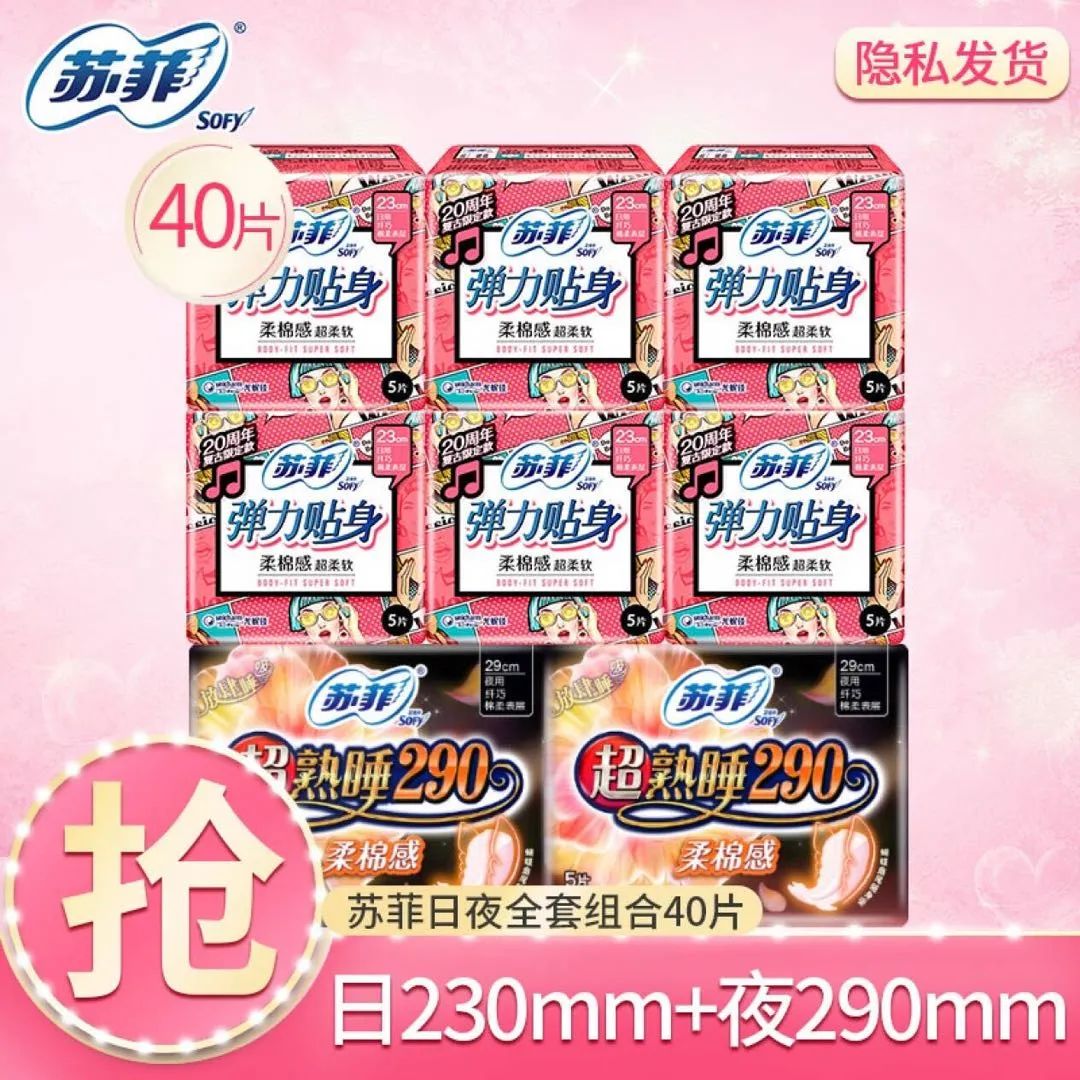 蘇菲衛生巾,40片的日夜組合只要29.9元,真是太划算了,一年又能省不少