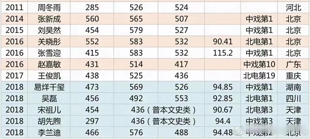 網友整理的近年部分明星高考成績,張新成、關曉彤、趙嘉敏、王俊凱、宋祖兒等過了二本線/普本線↓