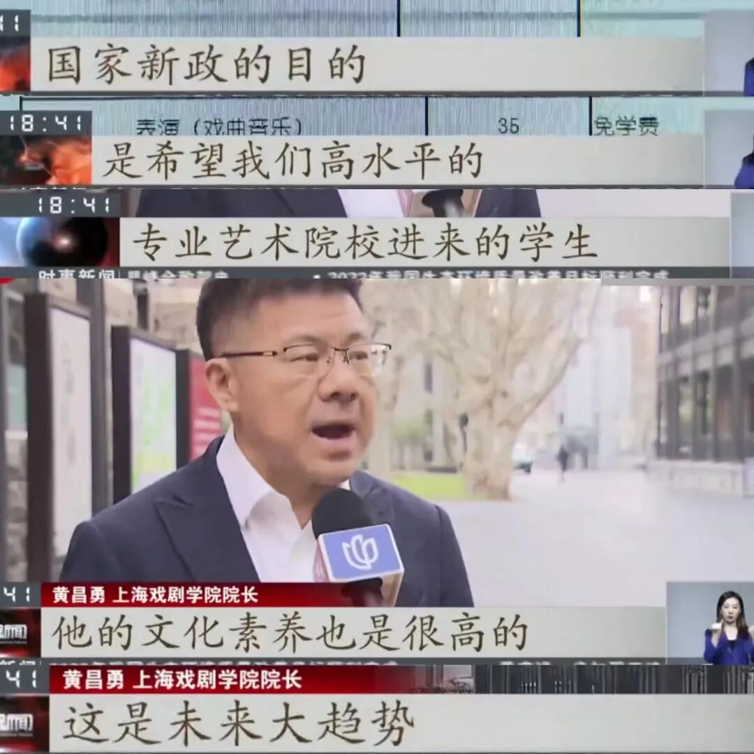 昨晚,據東方衛視報道,上戲今年提高了對錶演系考生的高考成績要求,考生必須達到所在各省普通一本分數線的70%。上海戲劇學院院長黃昌勇表示這是一個大趨勢:“這對藝術類考試過熱,或者我們演藝界目前一些社會上普遍不滿的流量明星現象可能會有所影響和扼制。”