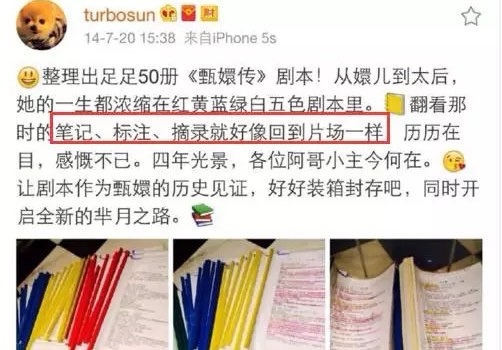 要不就夠天賦,要不就夠努力,很多演員又有點天賦,又夠努力。例如,不是科班出身的孫儷每次拍戲,劇本做的標記堪比高考筆記。