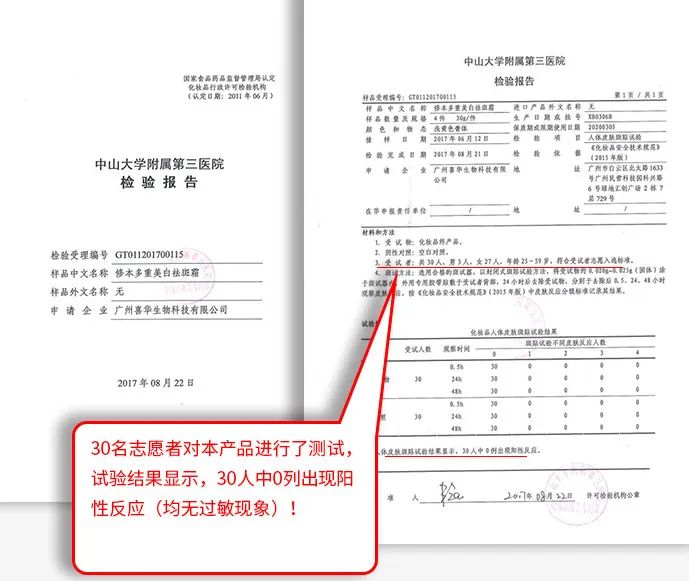 產品還邀請了30名志願者進行了測試,淡斑效果顯著,均沒有過敏現象。