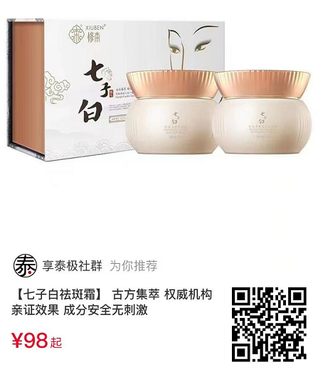 長期堅持使用七子白美白祛斑霜,色斑淡了,皮膚暗沉黃氣沒了,肌膚質感明顯提升,是會發光的好氣色!