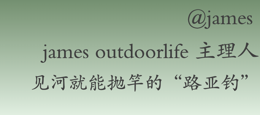 喜歡探索世界,學習各種運動,是戶外愛好者 James 的生活態度,而多樣化的喜好也將他的職業包含進來,成為了 james outdoorlife 品牌的主理人,經營一些來自各個國家的風格戶外用品,涉獵廣泛,從自行車、露營到槳板、釣魚等各個範圍和領域都有。職業決定了他的時間沒有周中週末之分,所以愛好也融合於生活中的每個階段,徒步、露營、開皮卡去秦皇島玩帆船…現在釣魚,也成了他生活的重要部分。