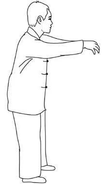 2.臀部往後坐,好像坐在一個高凳上,使腰部肌肉放鬆,尾椎骨(老百姓所謂的“尾巴骨”)自然松垂,好像老虎向下拖著尾巴,形成一個自然向下的松沉力;與此同時,(請關注微信:pengxinboshi)兩手慢慢向前上方推出,向上鬆緩地舒展脊柱,形成一個向上的力。