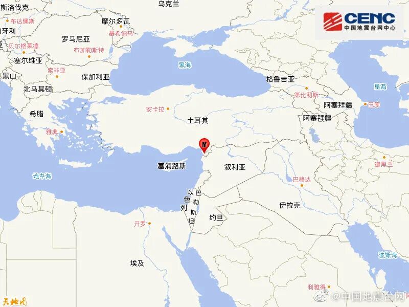 中國地震臺網正式測定:02月21日01時04分,在土耳其(北緯36.10度,東經36.05度)發生6.3級地震,震源深度10千米。