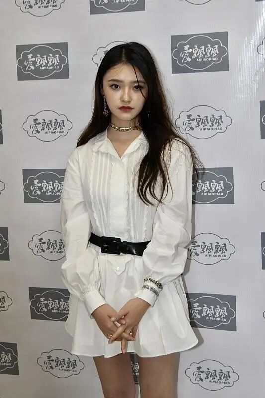 白色襯衫裙在釦子邊緣處用小花邊裝飾,增加了裙裝的設計感,同時減淡了襯衫的正式感,對襯衫進行延長處理,打造出連衣短裙的版型,盡顯時尚氣息,裙裝採用黑色腰帶進行裝飾,凸顯出腰線,拉長腿部比例。