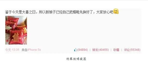 有些傳聞像牛皮糖粘上了洗不掉,那時也不流行律師函警告,她索性親自認證,在鄧超的電影裡玩梗(《分手大師》鄧超聞楊冪的拖鞋被燻暈)、甚至自己婚禮上也玩。