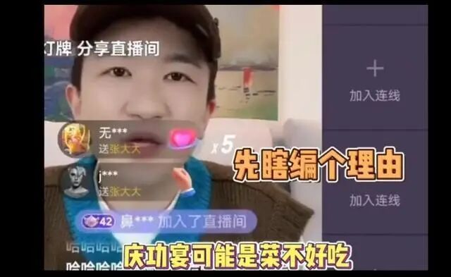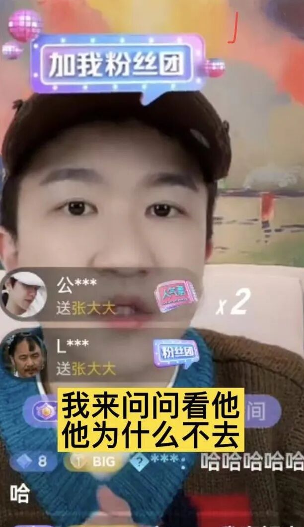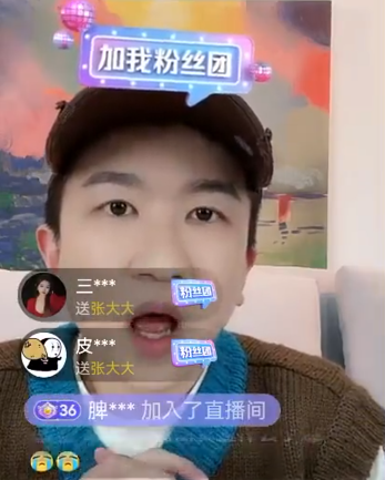 幾個女生在直播間吱哇亂叫好似“百鳥朝鳳”,而張大大就是張不開嘴的那隻鳳,一張大臉佔滿左側大屏幕,迷茫和無助都溢出來了。