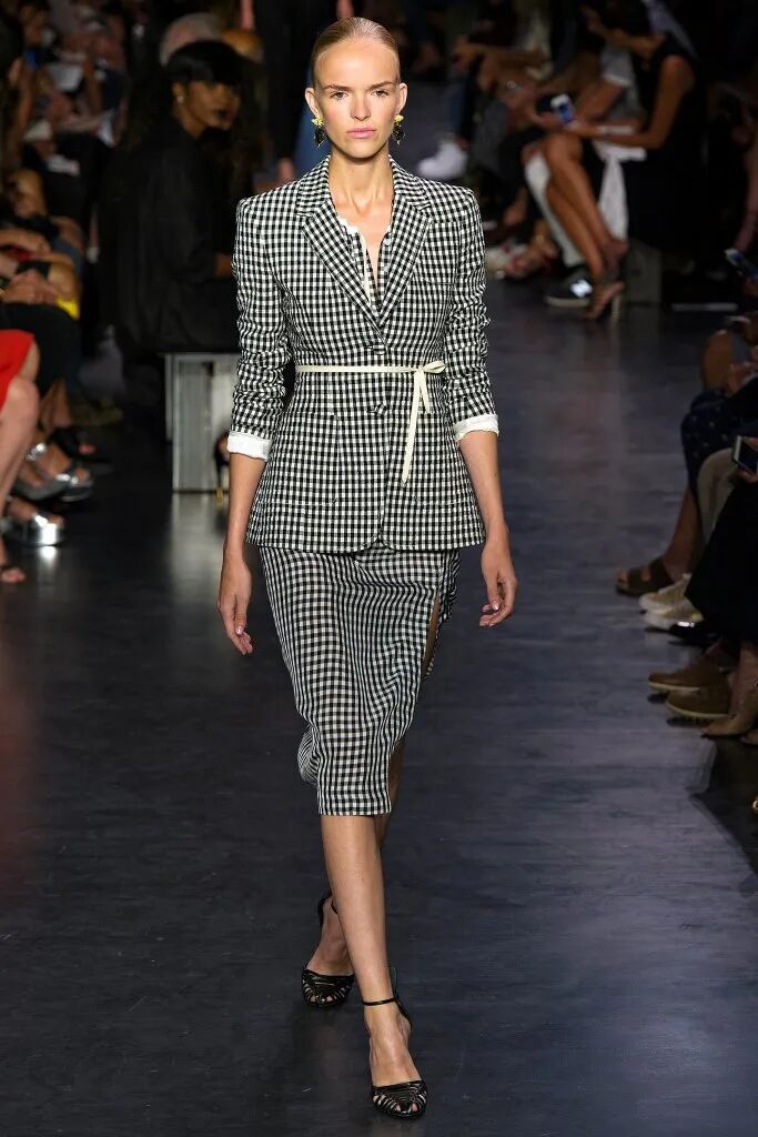 寬肩西裝和束緊的腰身設計,凸顯出窈窕多姿的沙漏型輪廓,經典的復古氣息在格紋圖案中流淌。