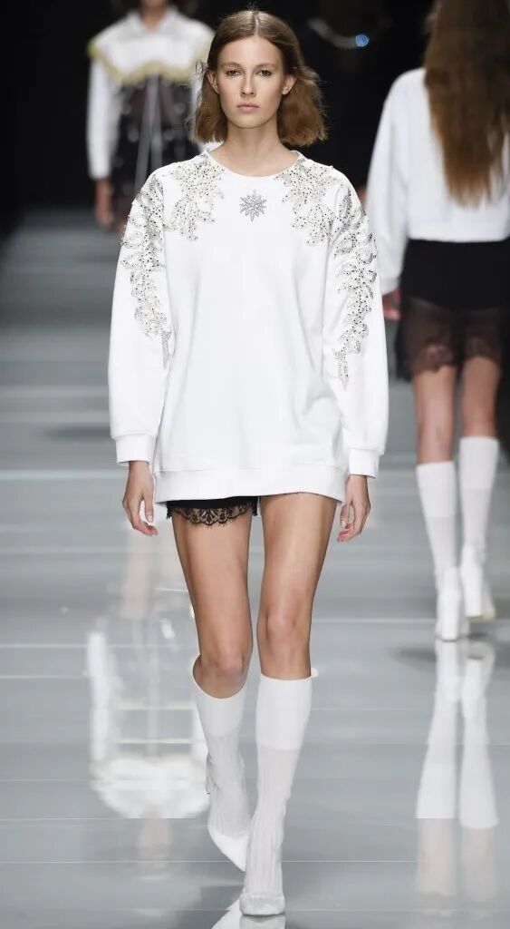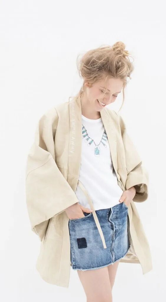 淺色內搭 + 短裙,可以再配上一件隨意的寬鬆大外套,不得不說這樣搭出來真的又颯又美。