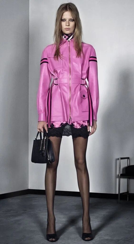 利用帥氣的外套來搭配蕾絲短裙,一剛一柔,體現女性優雅氣質。若隱若現的蕾絲也格外加分,沒有過多的浮誇裝飾,清爽又實穿。