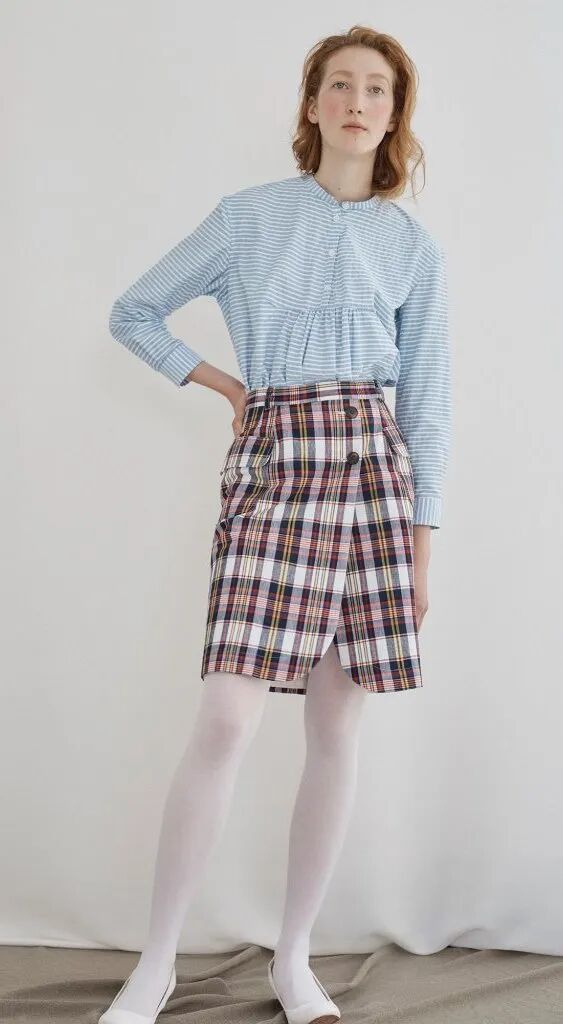 格子條紋看起來極為普通常見,開叉裙襬卻將它轉變為性感時髦風,這樣的露腿小心思豈不是巧妙又可愛?