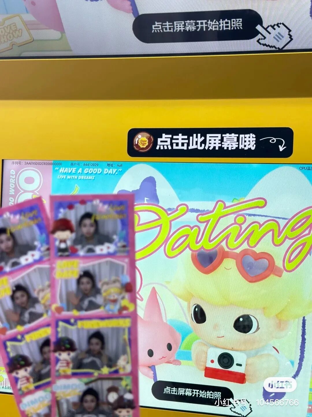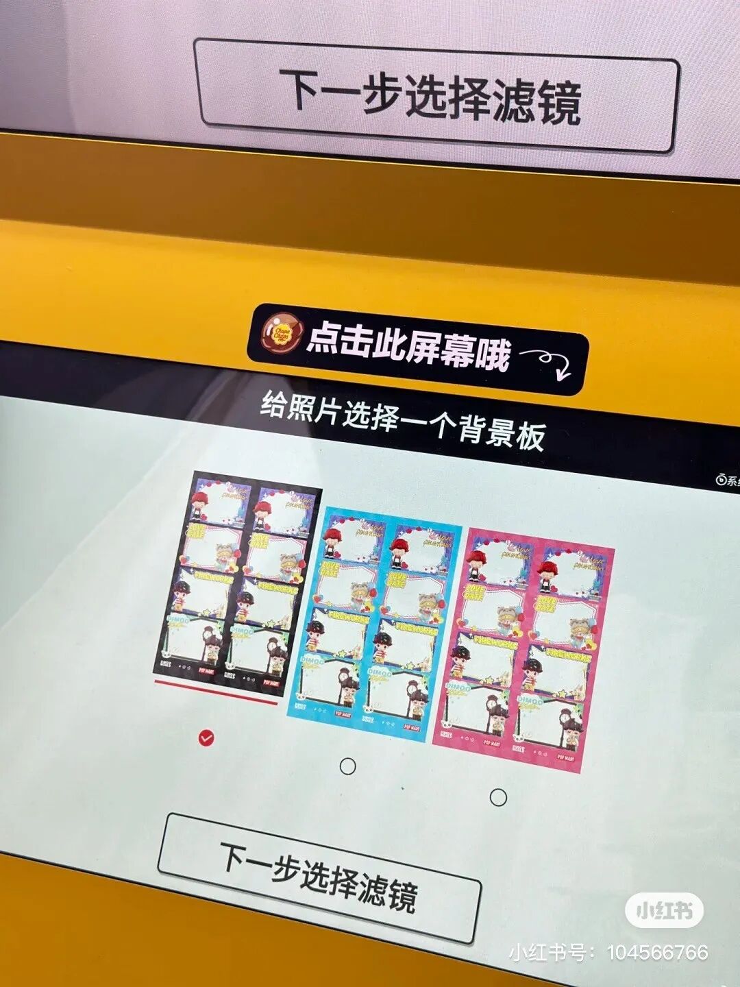 王府井apm店的泡泡瑪特也有大頭貼機器,選好背景框後和MOLLY、DIMOO、LABUBU同框合照,一杯奶茶的價格誰能不心動呢,就是這隊伍排得讓人有些勸退。