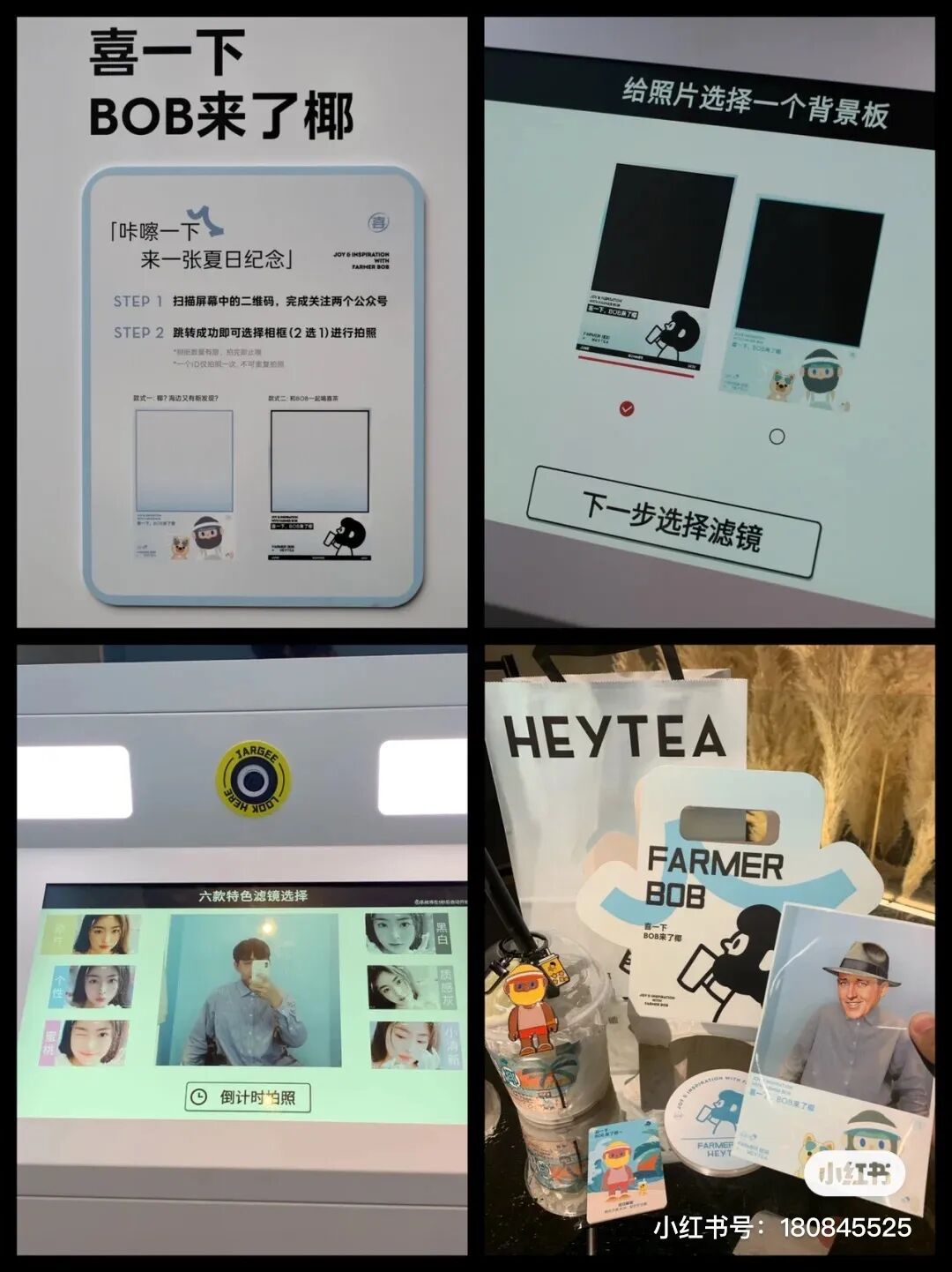 喜茶和FARMER BOB聯名的時候同樣把大頭貼機器搬進了店裡,喝著聯名、逛著BOB娃、再美美拍大頭貼,對了,相紙也是和BOB的聯名款,這一波夢幻牽手贏麻了嗷。