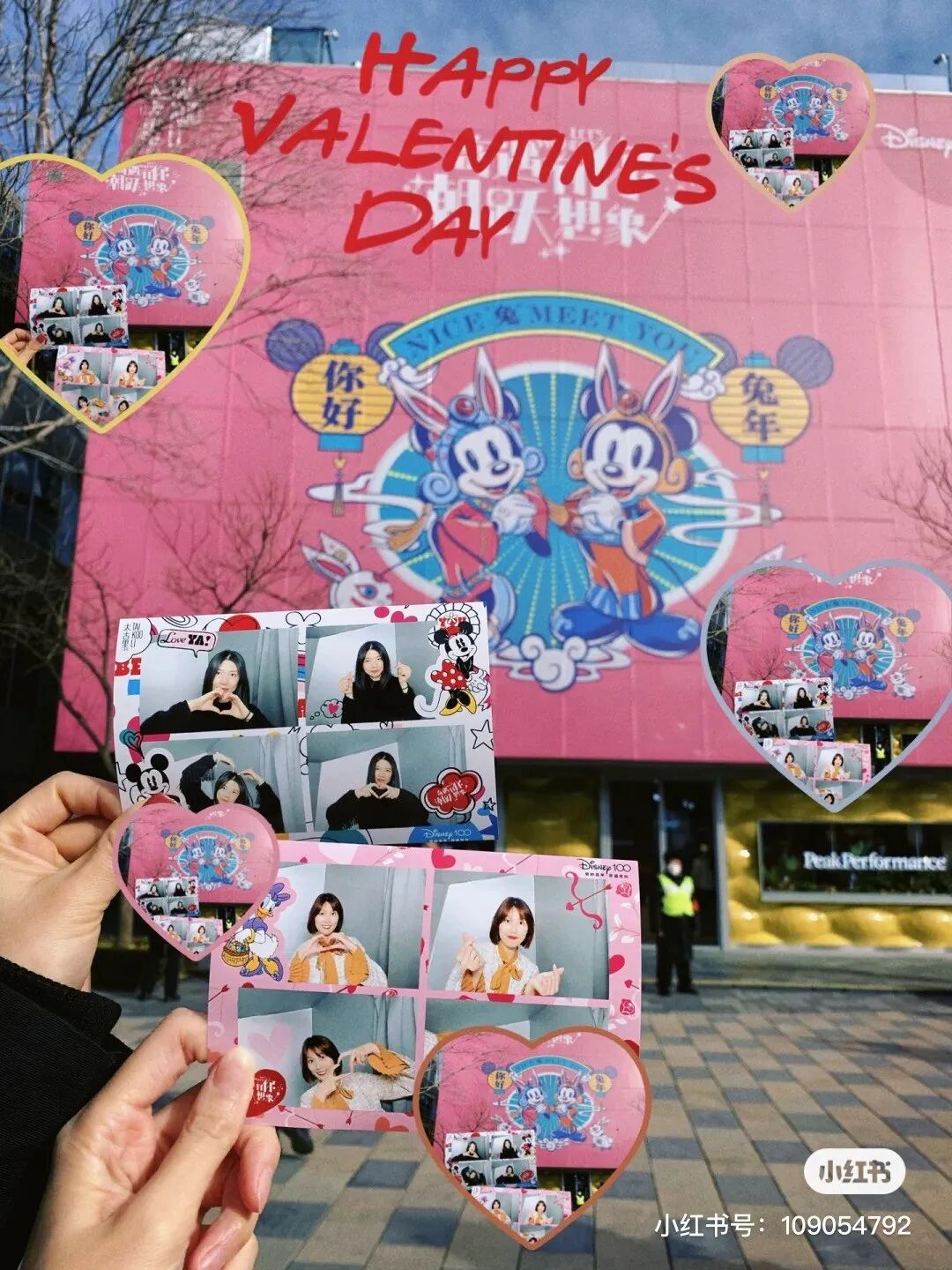 迪士尼最近在三里屯舉辦了一百週年紀念展,一進入南廣場就能看到矗立著的巨型米奇雕塑。展區內專門設置了大頭貼區域。照片有一宮格和四宮格兩種選項,背景圖案可以選擇自己喜歡的迪士尼ip角色,拉上姐妹一起拍,一起可可愛愛。