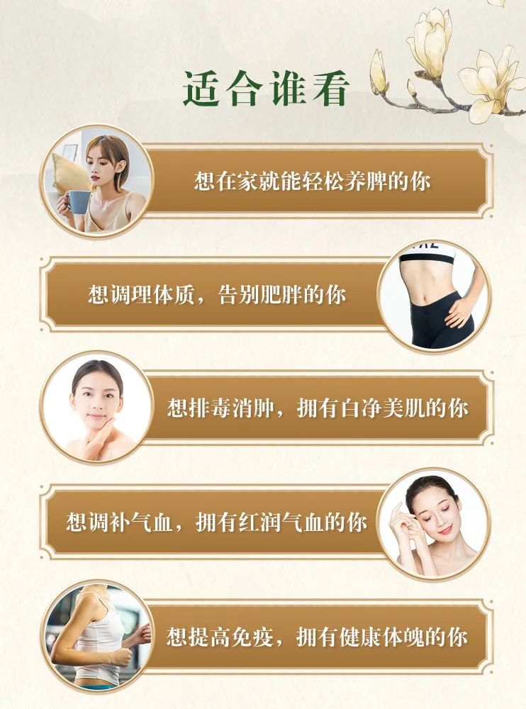 依照千年中醫智慧,教大家更瞭解自己的身體,通過簡單的營養膳食、隨手可做的穴位按摩,健脾祛溼,養成不易老、不虛胖、少生病體質,全家受益。