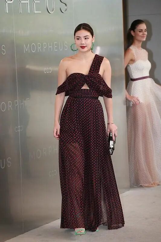 樂基兒身材“發福”嚴重,穿長裙略顯壯,但氣質挺好,不愧是模特,氣場真的是很不同,裙裝的選擇雖然大膽暴露,但是卻不是非常俗氣,反而展現出高級性感的味道。