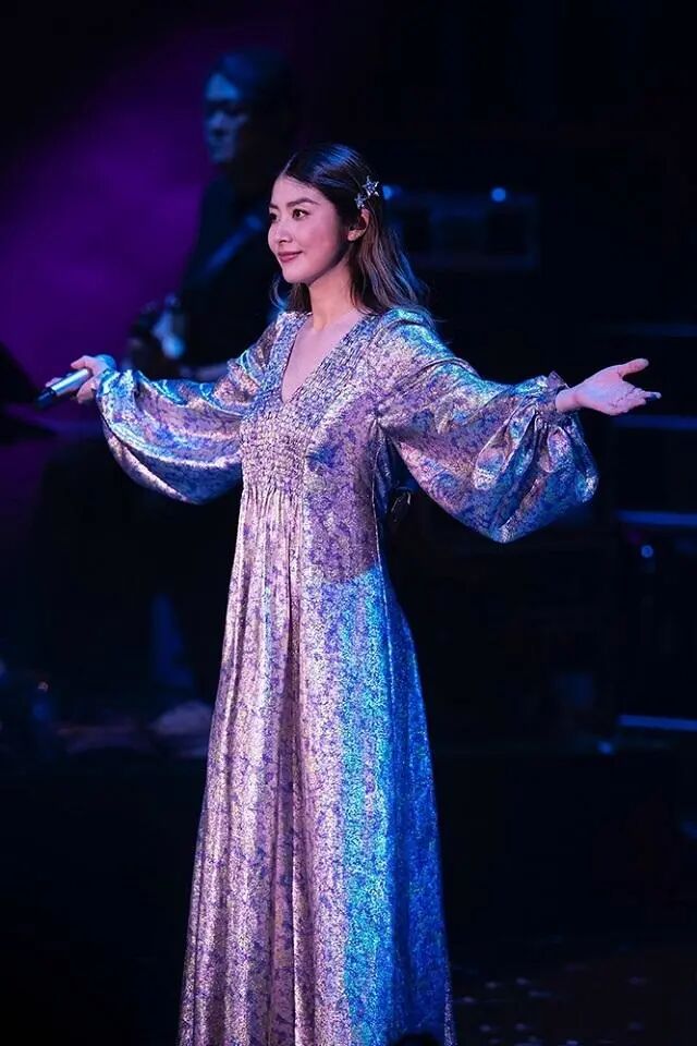 陳慧琳的這條亮片連衣裙真是太惹眼了,銀色的亮片元素襯得她皮膚更加有光澤,泡泡袖的設計很有設計感,還呈現一種浪漫唯美的感覺。