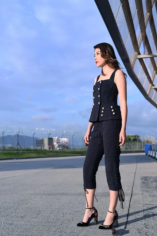 49歲的陳慧琳在穿搭上還是很放得開的,身穿黑色吊帶套裝高級又性感,上身的吊帶上衣十分修身,完美秀出她豐滿的身穿,吊帶的設計讓她大秀了一把迷人香肩,相當撩人,下身搭配的七分褲格外凸顯身材曲線,修身的設計緊緊貼合她的腿部,完美展現出她纖細筆直的腿部線條。