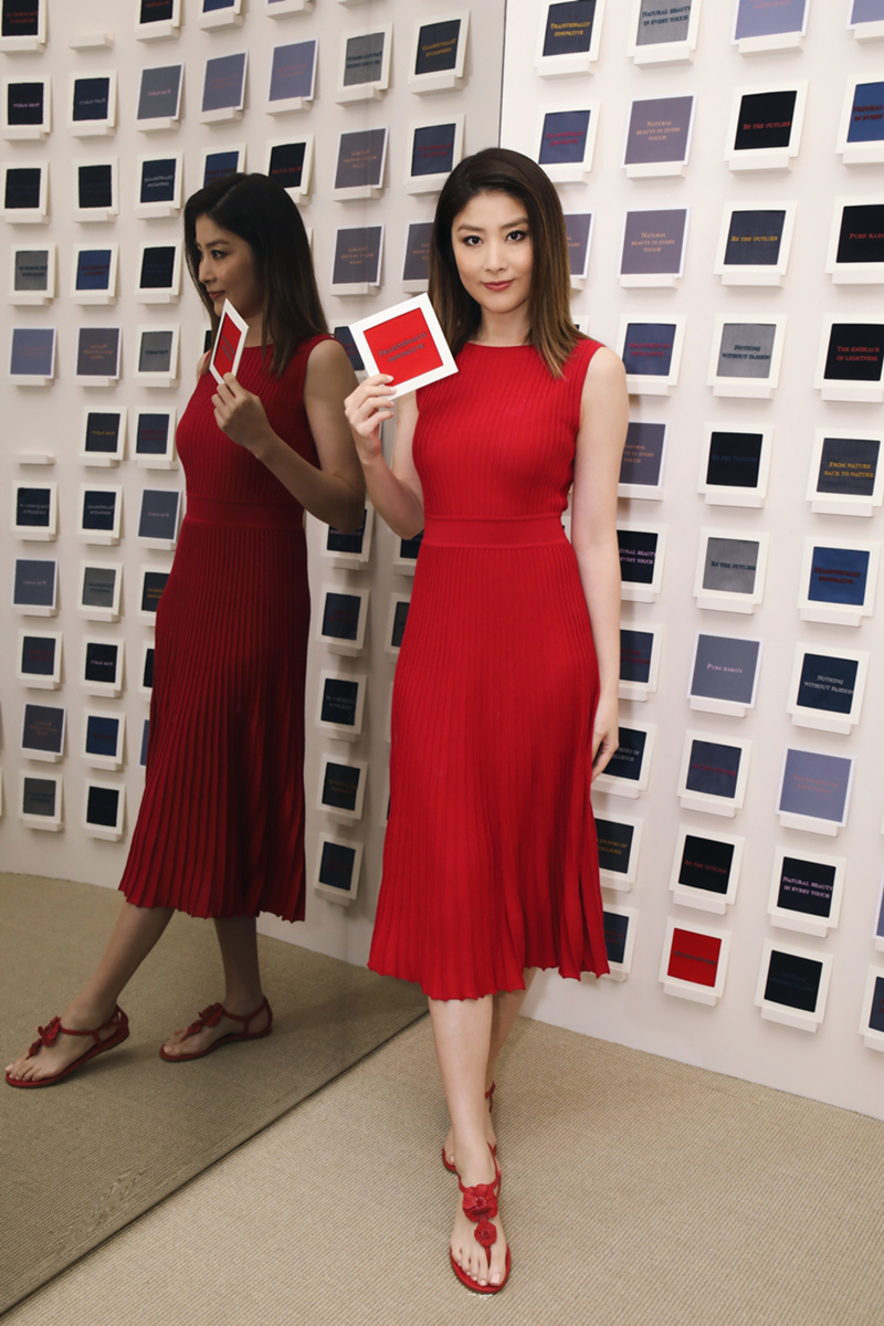 陳慧琳一襲優雅飄逸的紅裙,完美展現出她高貴冷豔的氣質,亮眼的紅色襯得她皮膚白皙細膩,裙子的剪裁乾淨利落,讓她看起來更具優雅知性氣質,肩部的無袖計十分獨特,凸顯出她優美的手臂線條,裙子的款式比較修身,完美展現出她的纖細腰肢,盡顯曼妙身材曲線。