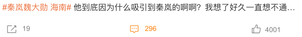 每次小懟都能把秦嵐繼續逗得開懷大笑↓ 最後記者都忍不住了,請問你們倆到底在笑什麼???別管了,這可能就是熱戀中的小情侶。。。③姐姐自有分寸也是不曉得,為何只要女星一談戀愛就會被罵是戀愛腦↓動輒就給女星扣“事業上升期大脫粉”的帽子↓真的合理嗎何況秦嵐已經43歲了,拼出事業上升期,靠得也並不是什麼“單身人設”和粉絲叭。(沒有說粉絲不好的意思)反觀秦嵐本身的愛情觀,其實非常平和,非常正。雖然之前的一些愛情都沒有修成正果,(談過黃曉明和導演陸川)但她從來都沒對愛情失望過,始終相信愛情會來↓即便年齡在增長,但她絲毫沒有讓年齡成為愛情的困擾↓她永遠有充足的能力去愛,也有充足的能力被愛↓對婚姻的態度是順其自然不強求↓真的很有姐姐的底氣和魅力和魏大勳也不完全是“因戲定情”。因為秦嵐本身是“日久生情”掛的↓她和魏大勳早就認識了,也早就覺得兩個人笑點同頻,各方面都很合拍, 拍戲只是加速了進程而已。 (一部戲就定情什麼的,確實很不娛樂圈姐姐)所以說,你嵐姐自有分寸,她有自己的判斷力,也會為自己的幸福和事業負責,哪有那麼多戀愛腦陰謀論呀……最後再簡單說說魏大勳。他自然也算不上太知名的演員,更多情況下上綜藝更多,可作為路人,倒沒覺得他有多不堪帶點慫賤的性格不只是裝出來吸引姐姐的,嘴甜體貼+沒包袱也一直是他在娛樂圈生存的訣竅。曾經在節目上被尼坤提攜過,心裡一直很感恩,所以會為尼坤買很多遊戲玩↓但買完遊戲又給尼坤250塊人民幣,欺負他不懂中文↓王源有難,半夜給魏大勳打電話馬上來錢↓馬思純精神狀態有時比較一般,也曾在鏡頭前誇魏大勳人很好,會不厭其煩地給你陪伴↓哪怕直接在節目上被嗆不如王嘉爾有名又綜藝效果,觀眾不愛看, 魏大勳也不會生氣,不會冷場,巧妙用“我心疼何老師(和我搭檔)”來化解↓雖然娛樂圈人精很多,大家也總是見人下菜碟, 但能做到像魏大勳這樣,讓大多數朋友都對他有善良靠譜不諂媚的印象, 也不容易?說白了還是圖一個輕鬆,姐姐們早已經過了能被深情對視打動的年紀,有魏大勳在身邊,不用擔心沒話說和冷場,甚至不用擔心如何向周圍人解釋和回應這段感情,他可能會動動嘴皮自己化解。猜測魏大勳想踩著姐姐往上爬也不必。。。其實魏大勳才真是“在娛樂圈混不下去了就要回家繼承家業”↓(他爸爸名下曾最多有20幾家公司,魏大勳自己名下也曾有6家公司)同時也正因為他也不是正當紅的演員,不僅和姐姐們的粉絲利益交際交集較少,爆出戀愛也不會有什麼太大的損失,腥風血雨。要真不想談了,比較容易好聚好散。沒必要非唱衰啦。最後一句魏大勳喜歡秦嵐也很有理由啊,因為秦嵐真的很容易被逗笑~講笑話的人很期待被回應! 2023年 HAVE A GOOD TIME