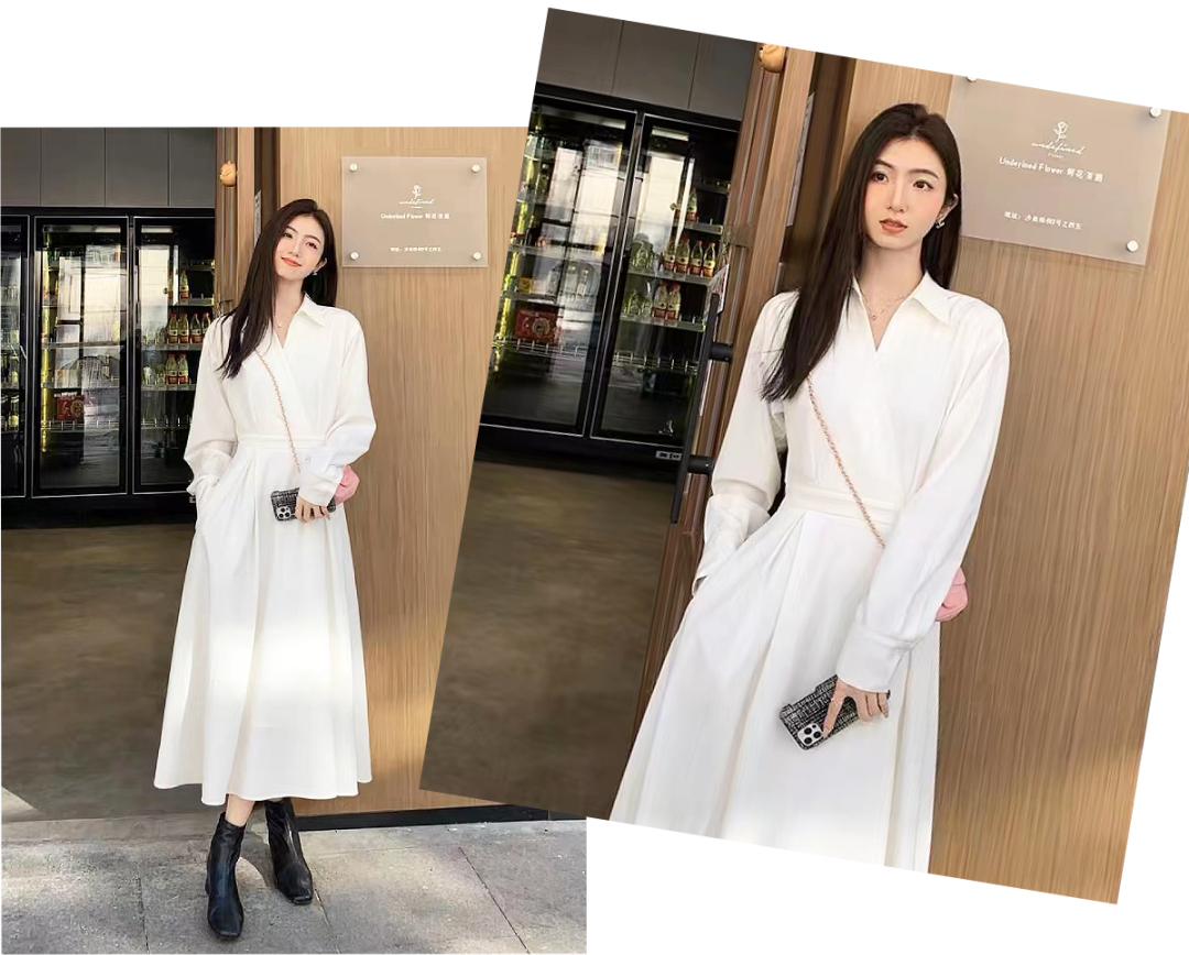 想要帶點姬氣的姐妹,就可以試試這種襯衫領的連衣裙。搭配黑色皮靴,超級時髦。
