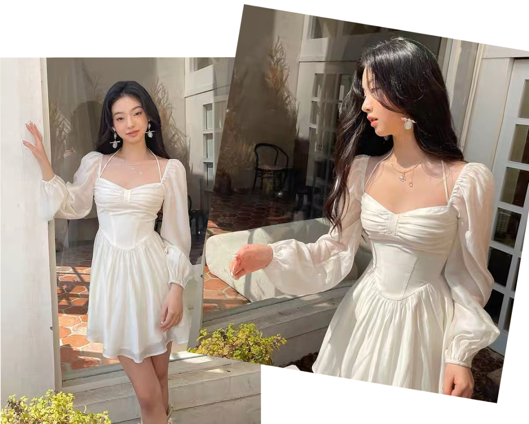 適當的露點膚也很好看,網上很火的魚骨掛脖小白裙,純欲性感,站在風景裡就像一張油畫。