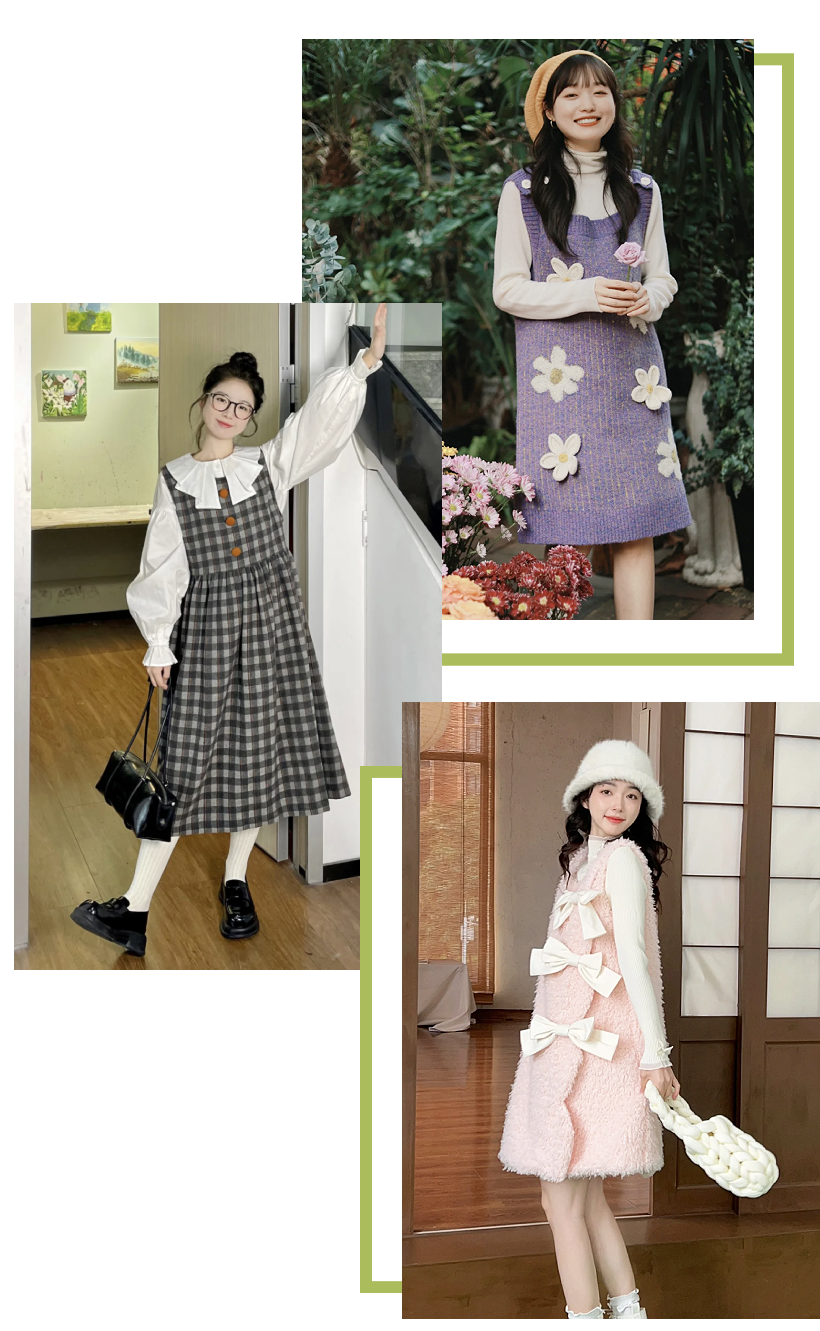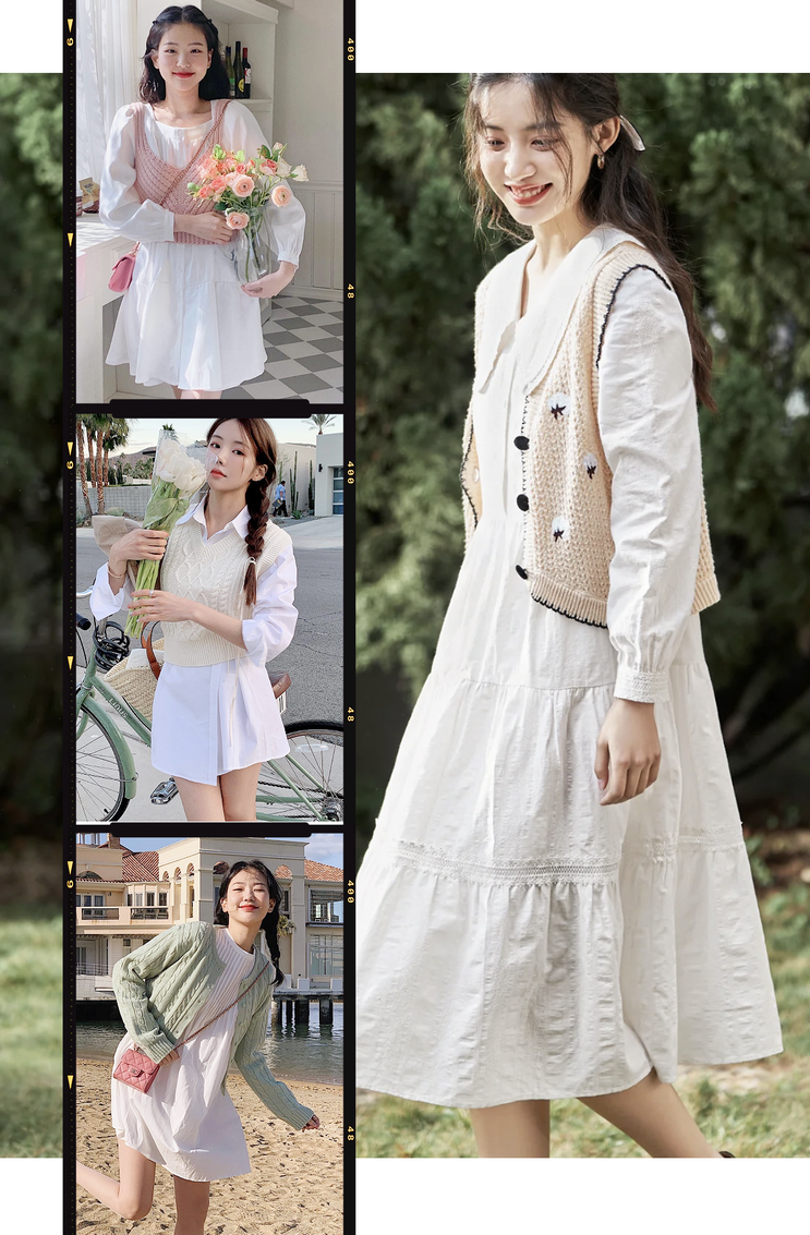 春天的背心裙很適合疊穿,按頭安利針織款的,和襯衫、T恤疊加在一起都很好看~