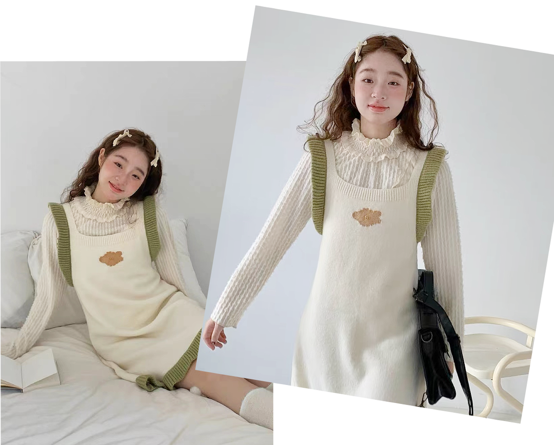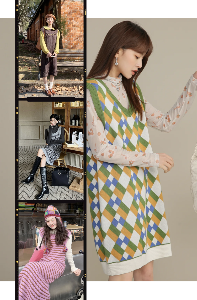 針織背心裙當然也要安排上,像這種版型寬鬆一些的,普通身材也hold得住~
