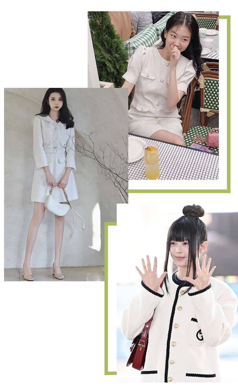 還有這種小香風的粗呢小白裙,穿上身就很精緻有氣質,穿上它迎接春天也太對味了~