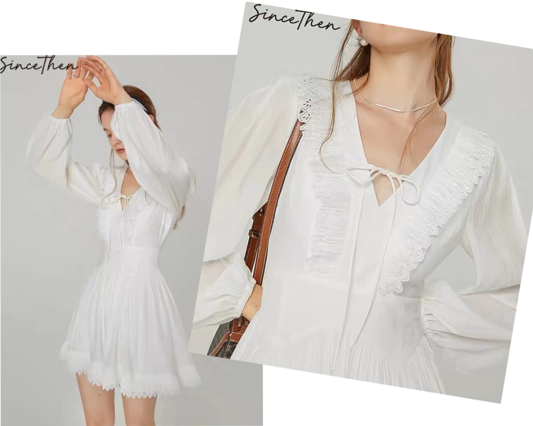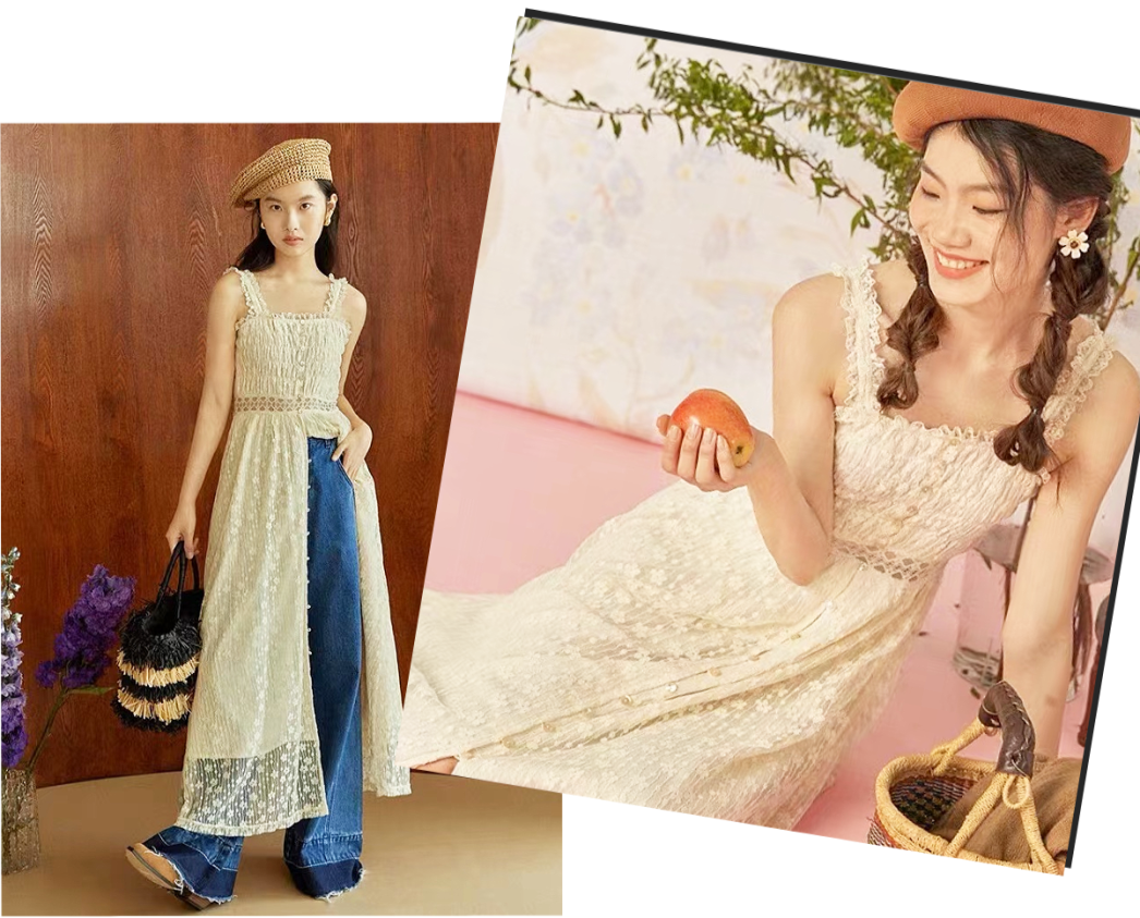 超重工的復古法式吊帶蕾絲裙,就很有初戀的清純感,奶甜奶甜的很上頭。