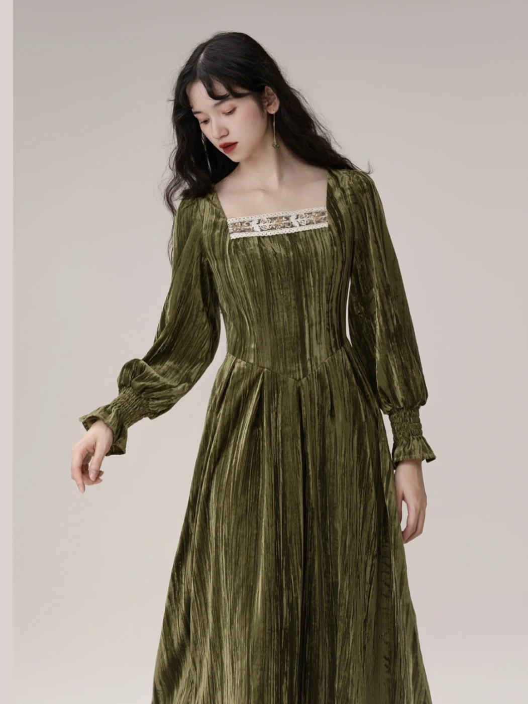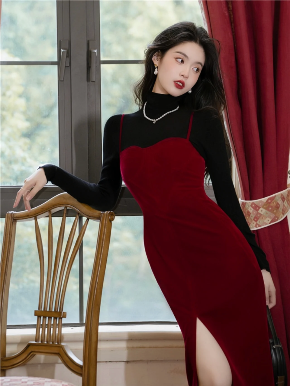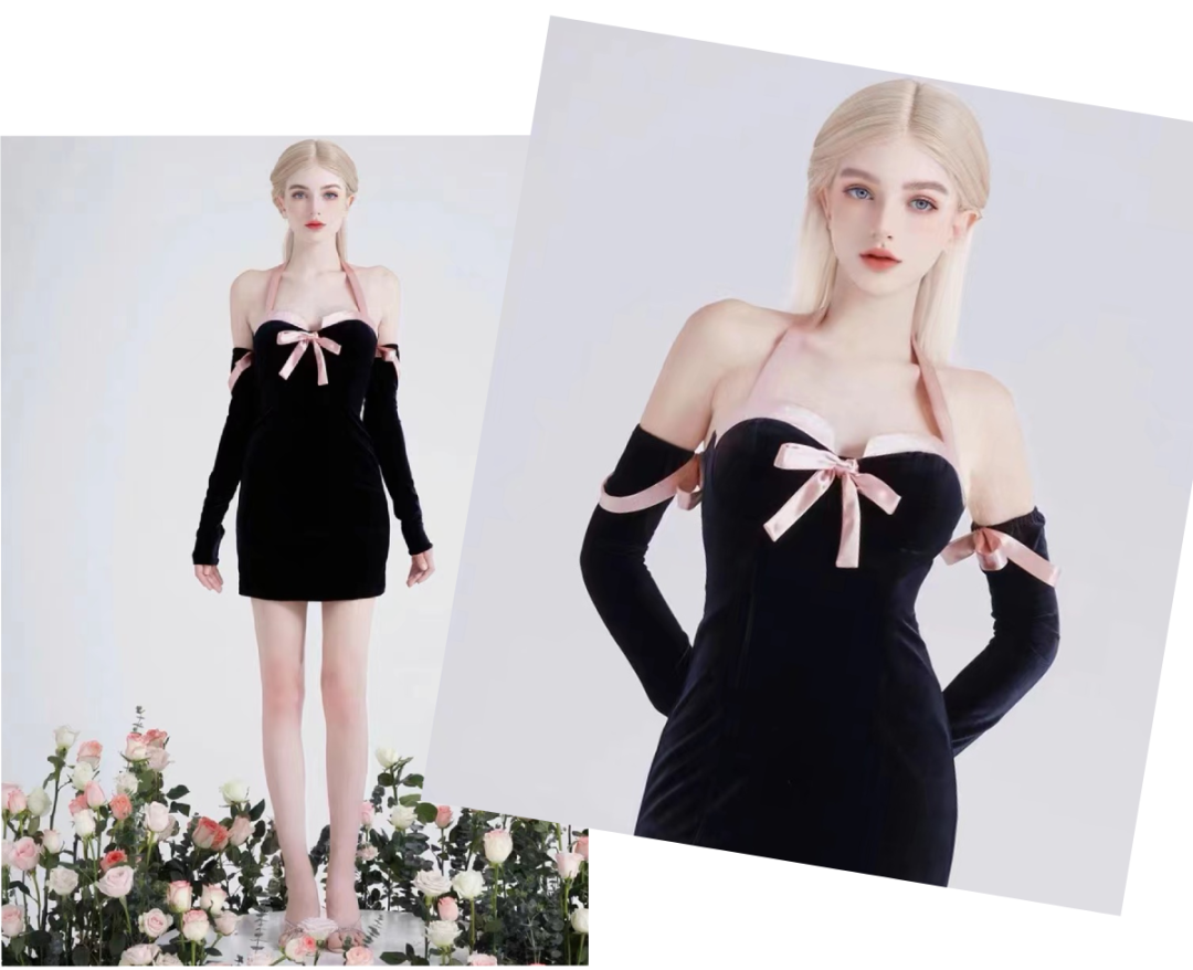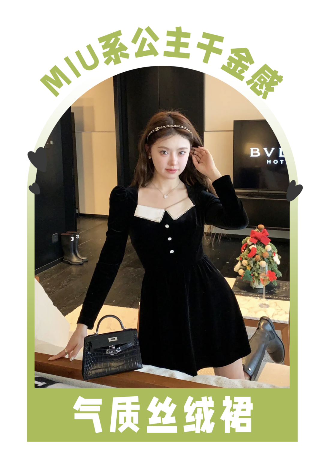 絲絨裙的材質本身會有一點反光效果,挑黑色的話會更加顯瘦,微胖の小姐妹可以pick黑色哦~