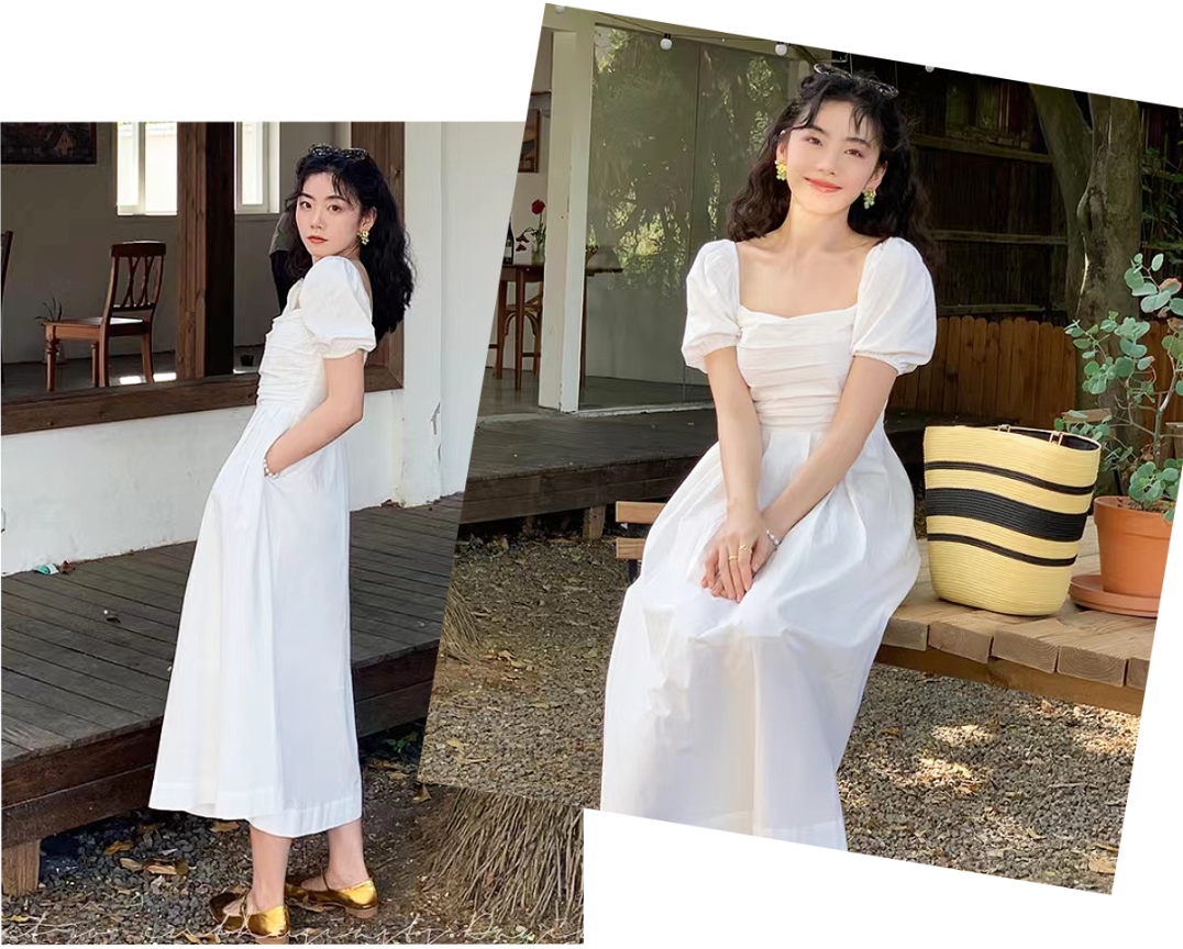 許大晴家的這條法式小白裙就很戳我,大裙襬+感壓褶打欖,把浪漫的氛圍感狠狠的拿捏住了~