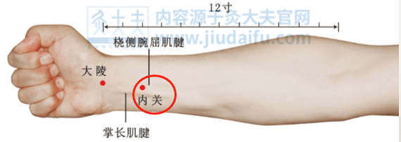 內關,為手厥陰心包經之絡穴,有益心安神、和胃降逆、寬胸理氣、鎮定止痛之功。
