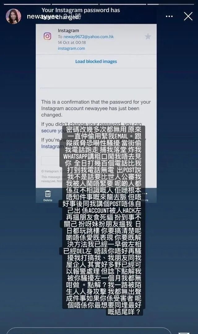 廖慧儀後面還拉黑了Sam所有的聯繫方式,她說自己被網友罵無所謂,說男朋友接受不了她也沒辦法,稱前男友這讓她感到害怕,不想跟他聯繫了。