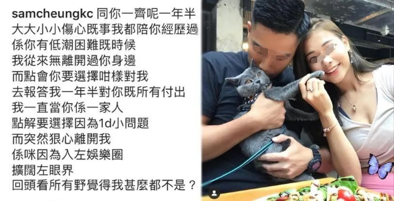 10天后,Sam又發文表示廖慧儀離開了他,覺得自己在對方眼裡什麼都不是。