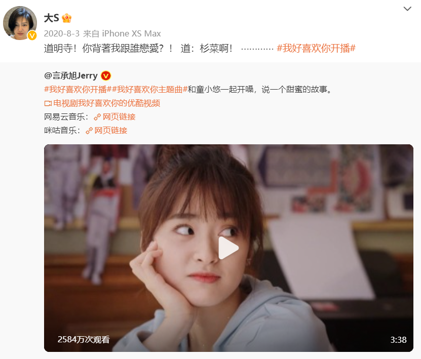 當時大S也在幫著宣傳:道明寺!你揹著我跟誰談戀愛?!