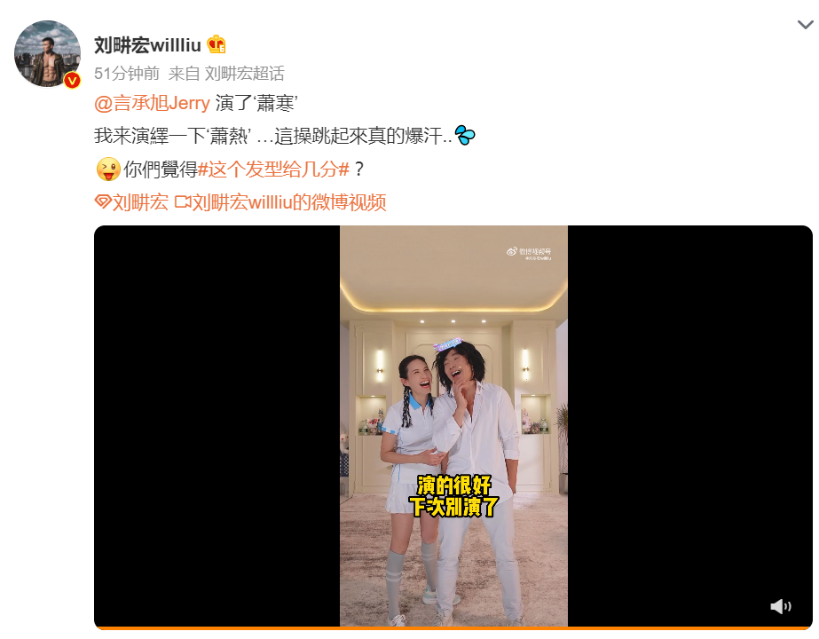 我們蕭寒大叔實火,劉畊宏直播時也來模仿言承旭劇中“蕭寒”的造型。