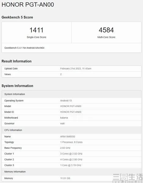 繼日前榮耀方面宣佈即將推出Magic系列新機Magic5系列,其產品端相關信息陸續被曝光後,也受到了眾多消費者的關注。隨著近日官方宣佈Magic5系列此次將帶來多項技術突破,並首發“青海湖”技術後,日前有消息源透露,該系列或將全系搭載驍龍8Gen 2主控,而且疑似該系列中的Magic5跑分成績也被曝光。根據此次曝光的Geekbench 5.4.1測試結果截屏顯示,Magic 5的單核成績為1411、多核可達4584,搭載的正式高通驍龍8 Gen2主控,並提供了12GB內存。而在其他硬件配置上,據悉Magic5系列或將會採用一塊6.8英寸的OLED屏幕,提供超過5000mAh的大容量電池,並有望支持66W有線快充。影像方面,Magic 5 Pro的前置雙攝模組則可能會支持0.5X、1X、3.5X、5X焦距。