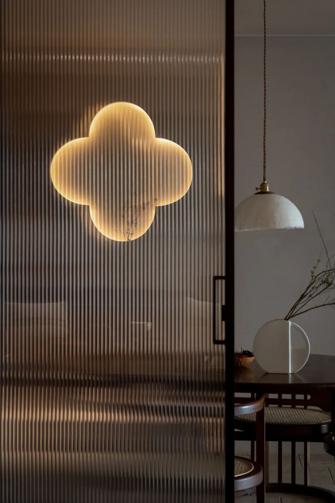 穿過茶室,在客廳一側便是溫馨的用餐空間。