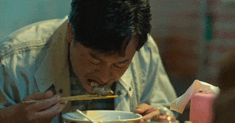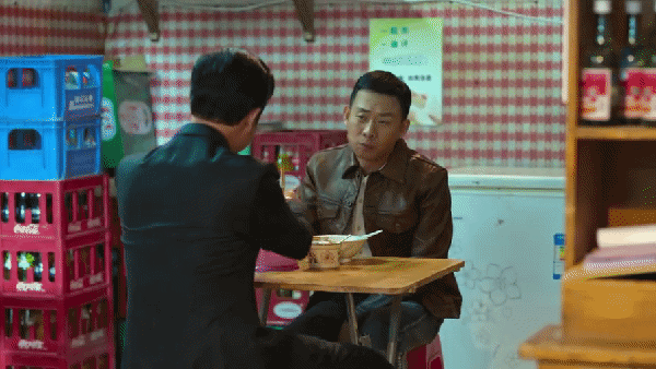 兩人第一次吃豬腳麵,安欣懷疑高啟強和謀殺案有關,這時高啟強處於劣勢,他心裡慌張,吃麵吃得狼吞虎嚥。
